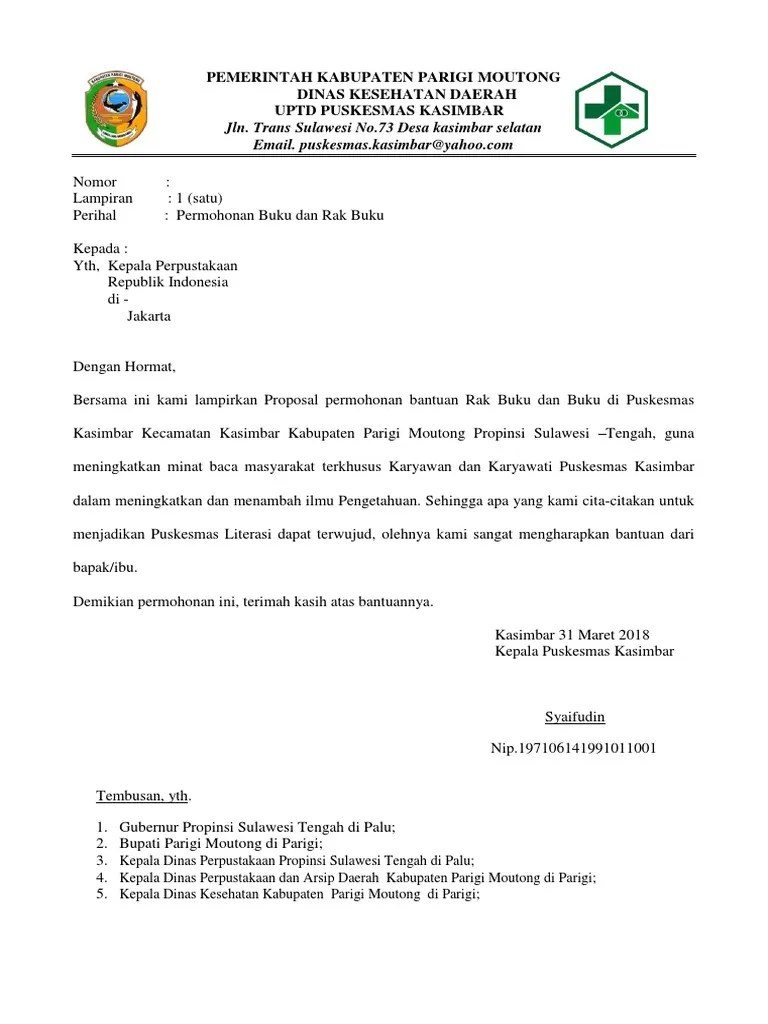 Proposal atau permohonan bantuan perpustakaan dan perlengkapannya.